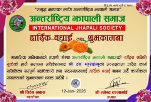 झापाली समाज यूकेको नयाँ कार्यसमिति गठन भएको छ। ११ जनवरी २०२६, आइतबार सम्पन्न साधारणसभाबाट टंक भट्टराईको अध्यक्षतामा नयाँ कार्यसमिति चयन गरिएको हो।