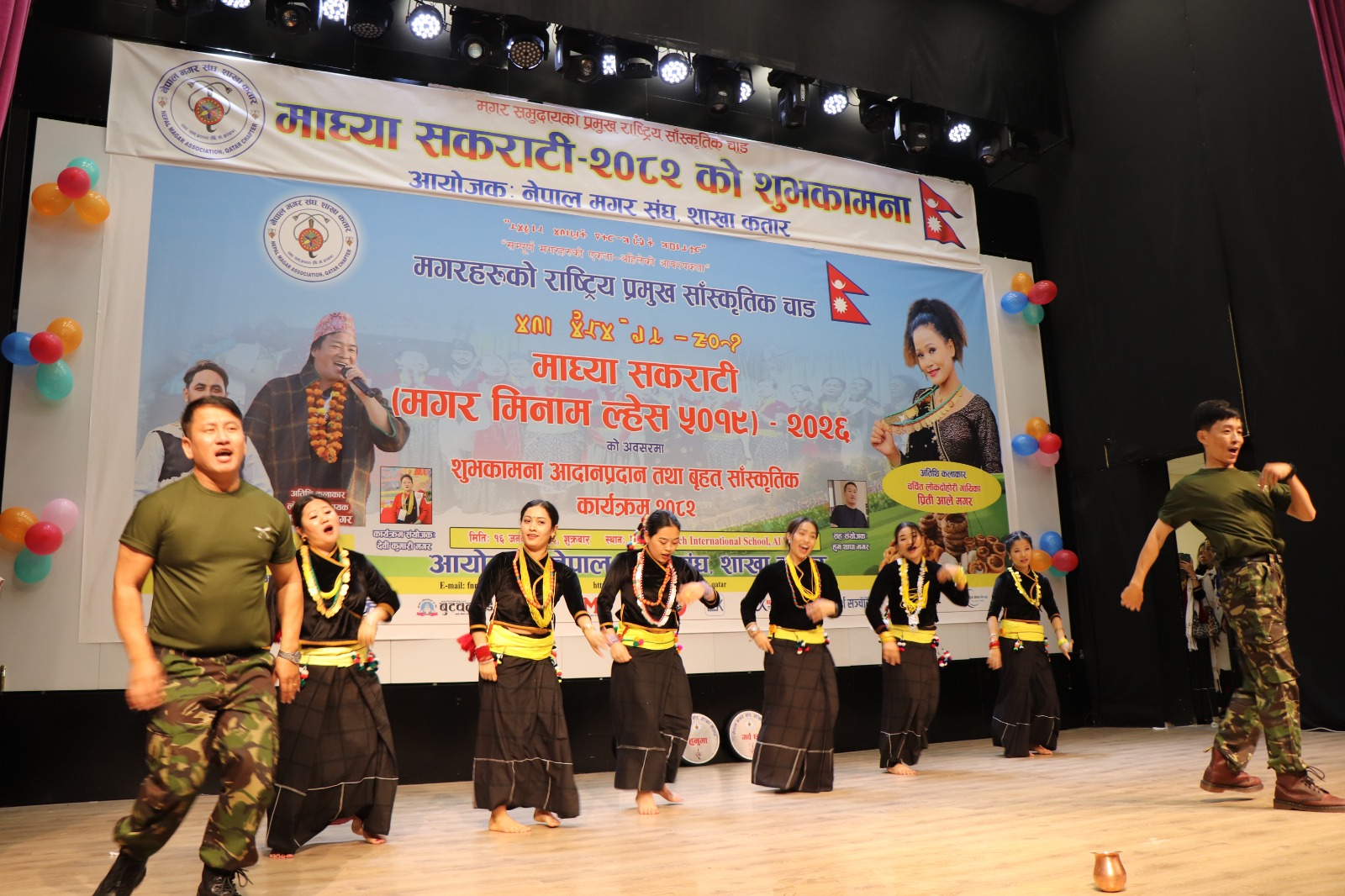 दोहा, कतार : नेपाल मगर संघ शाखा कतारले गत शुक्रबार डिपीएस मोनार्क इन्टरनेसनल स्कुलको सभाहलमा मगर समुदायको राष्ट्रिय प्रमुख सांस्कृतिक पर्व माघ्या सकराटी भव्य रूपमा सम्पन्न गरेको छ।कार्यक्रममा नेपालबाट आमन्त्रित चर्चित लोक तथा दोहोरी गायक–सर्जक अमर रोका मगर र युवा पुस्तामा अत्यन्त लोकप्रिय गायिका प्रिती आले मगरले उत्कृष्ट सांगीतिक प्रस्तुतिहरु मार्फत दर्शकलाई झुमाएका थिए। उनीहरूको गीतमा उपस्थित दर्शकहरू नाच्दै, गाउँदै कार्यक्रमभर उत्साहमा सहभागी भएका थिए।