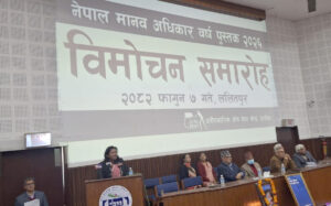काठमाडौँ । मानव अधिकार तथा सामाजिक न्यायका लागि कार्यरत संस्था अनौपचारिक क्षेत्र सेवा केन्द्र (इन्सेक) ले नेपाल मानव अधिकार वर्ष पुस्तक २०२६सार्वजनिक गरेको छ । राष्ट्रिय मानव अधिकार आयोगका पूर्व सदस्य तथा मानव अधिकार शताब्दी व्यक्तित्व डाक्टर गौरीशङ्करलाल दासले बुधबार वर्षपुस्तक विमोचन गर्नुभएको हो ।