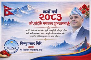 सम्बन्धित समाचार नव वर्ष २०८३ को पावन अवसरमा हार्दिक मंगलमय शुभकामना कीर्तिपुर १० वडाद्वारा निःशुल्क स्मार्ट सार्वजनिक शौचालय सेवा सुरु विश्वविद्यालय पुनरसंरचनाको प्रक्रिया अघि बढेको छ : उपकुलपति अर्याल सेनाको जगदल गणद्वारा कीर्तिपुरमा सामुदायिक विपद् प्रतिकार्य तालिम सम्पन्न ललितपुरमा छुरा प्रहारबाट घाइते नेम्वाङ दाजुभाइको उपचारका क्रममा मृत्यु नेपाल चेम्बरद्धारा एनआरएनएका नव–निर्वाचित पदाधिकारीहरुको स्वागत